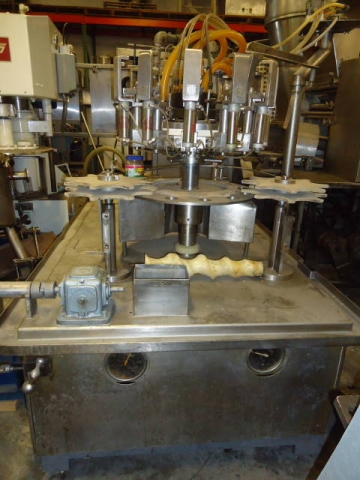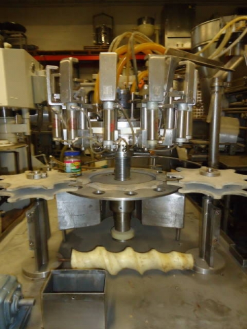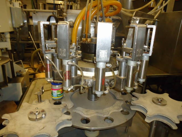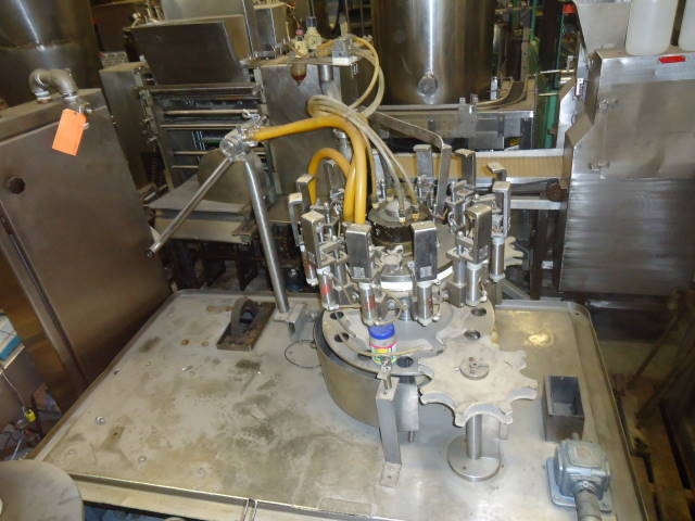 1-USED PACIFIC 12 STATION AUTOMATIC ROTARY POSITIVE DISPLACEMENT FILLING MACHINE. LAST USED AT KRAFT FOODS FOR FILLING 24 OZ. SALAD DRESSING PRODUCT, FILLER HAS APPROX. 6" CENTERS AND STAINLESS STEEL NOZZLES AND CABINETRY. WITH CONTAINER INFEED AND DISCHARGE STARS. (STOCK # 5538)