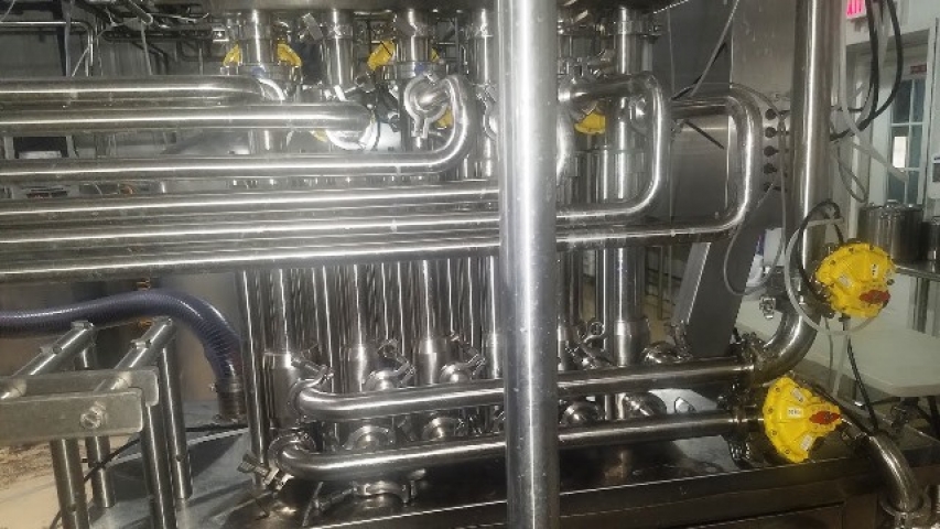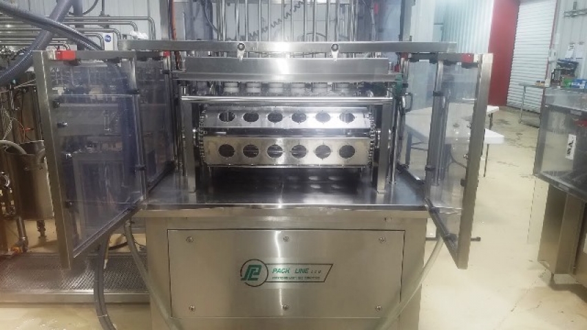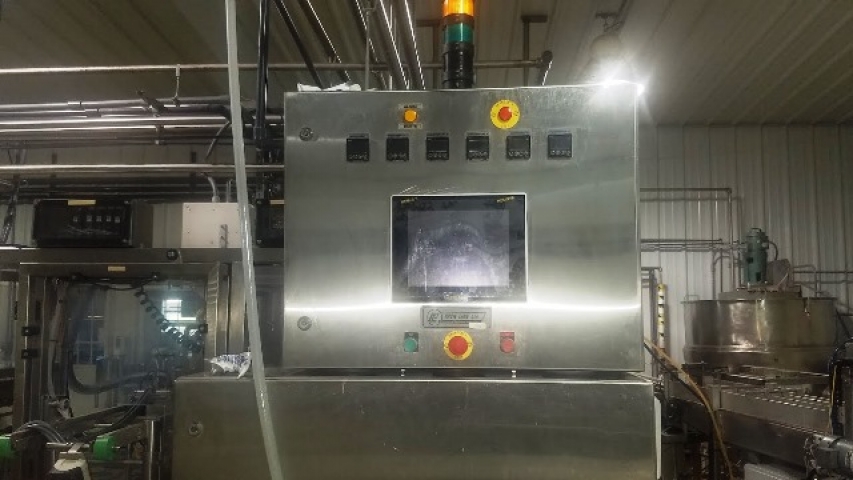 1-Used Pack Line 6-Lane Inline Fully Automatic Cup Filling and Sealing Machine, Model PXM-6.  This Servo driven machine was last used in the yogurt industry for filling and sealing pre-formed cups.  Suitable for filling in a “clean environment”, machine can operate up to 270 cups per minute.  Machine denests, fills and seals with pre-cut foil.  Machine is designed for additional space for future fruit filling as well.   Designed with CIP construction, hopper holds 15 gallons of product, electrical requirements 3 phase, 208 Volt.  Presently set for 3.1 in (80mm) diameter cup, machine last filling 6 ounce round cups. (Stock # L1296)