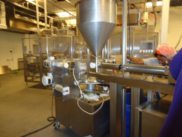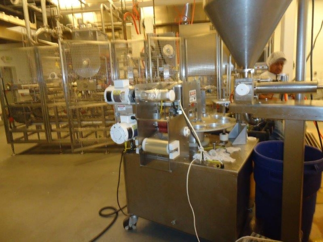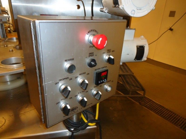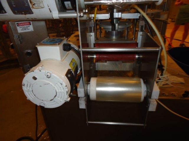 1-Used World Cup Model 12-32 Rotary Cup Filling/Sealing Machine, Serial number M1600. Rated up to 40 indexes per minute, this twelve pocket filler can handle cups up to 4.75 in. diameter. Presently set for 410 cup. Can be supplied with Volumetric Technologies Model 2090-1 Single Piston Filler at additional cost. (Stock #L1254)