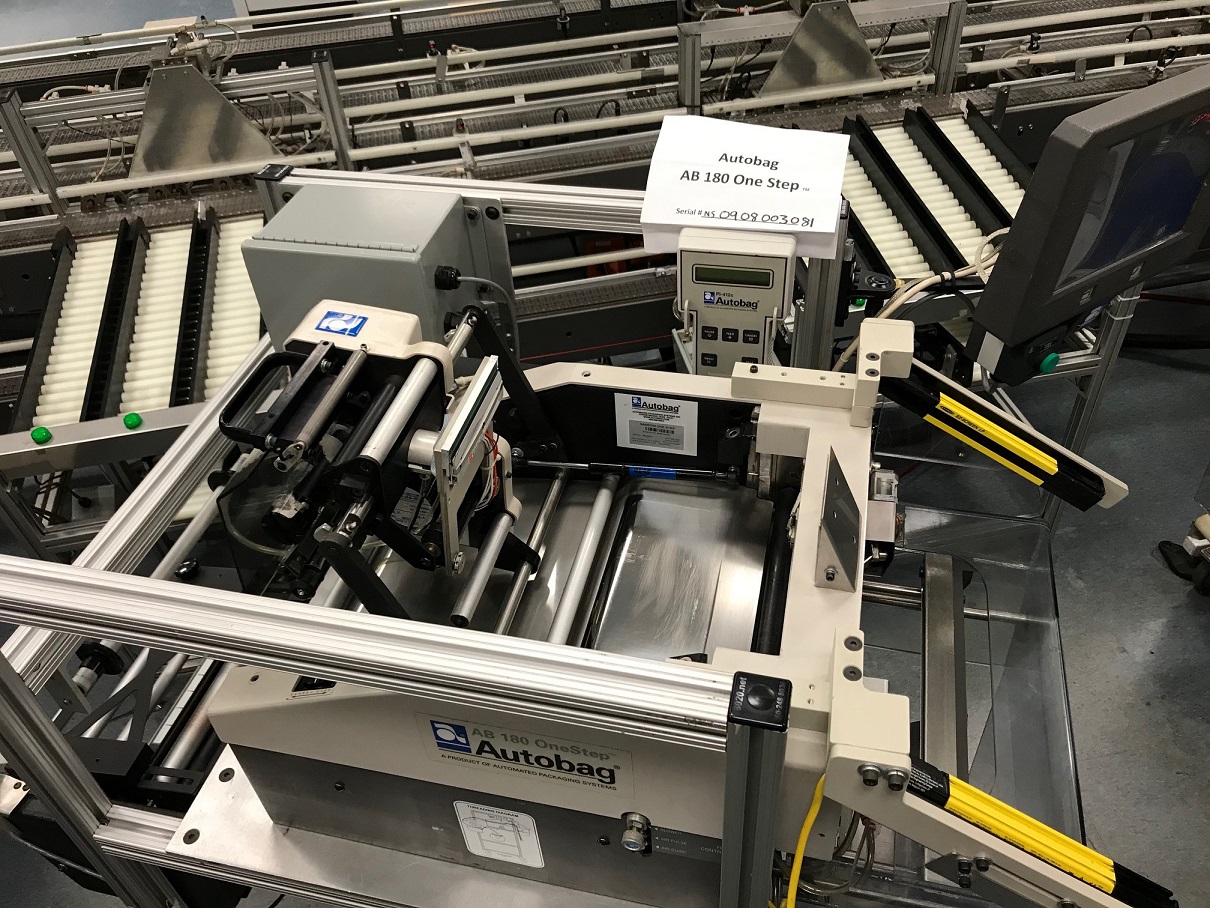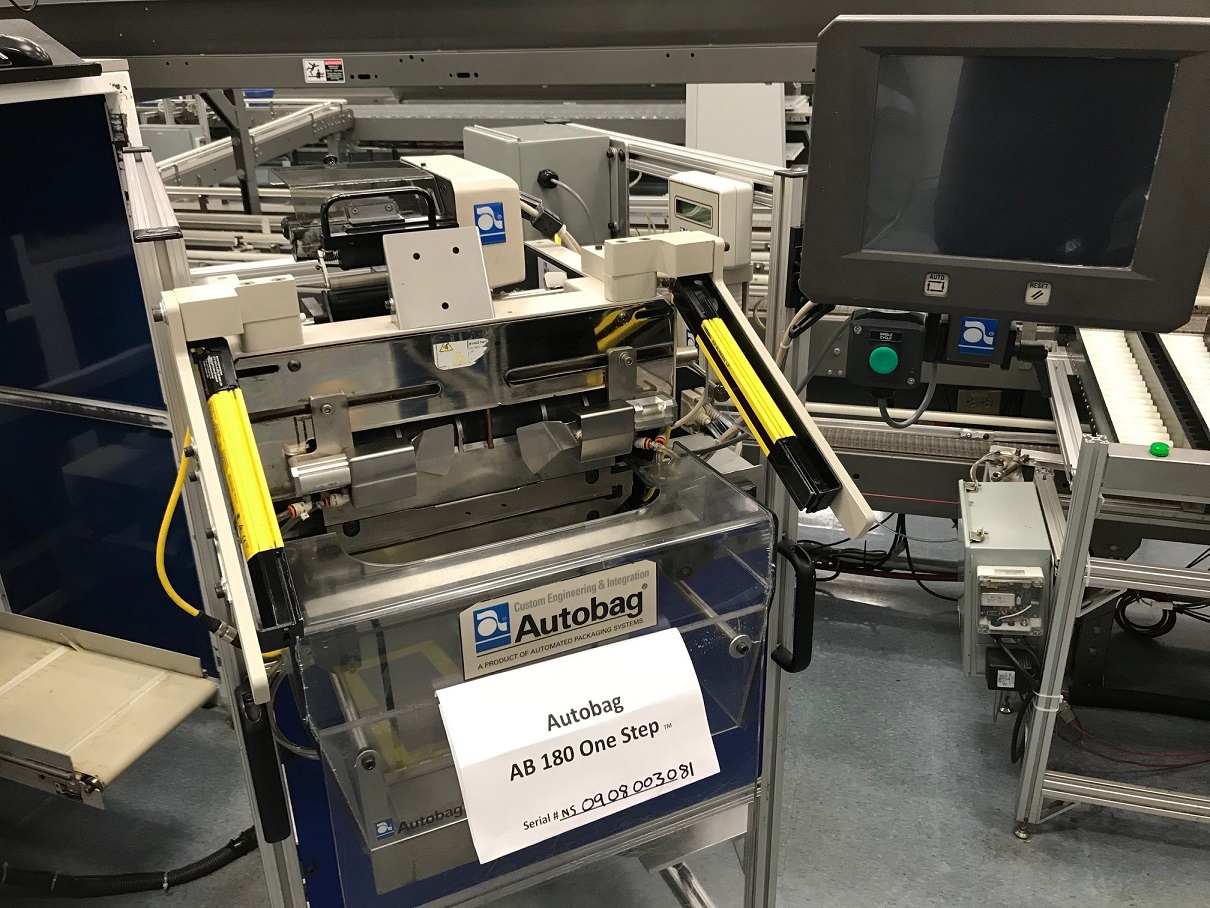 8-Used Automated Packaging “Autobag” Model AB180 Automatic Bag Filling and Sealing Machines. Rated up to 80 bags per minute, Machines have “One Step” Print Heads and PL412C and HMI Assemblies. Last used for packaging operating of major pharmacy store chain. (Stok #L1362)