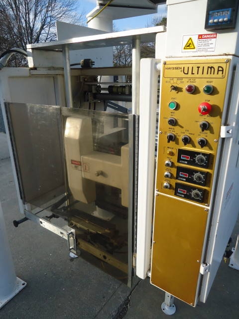 1-USED HAYSSEN ULTIMA FORM/FILL/SEAL MACHINE MODEL 95-16HR, S/N U15973. LAST USED IN FOOD PRODUCTION, MACHINE HAS ELECTRIC EYE REGISTRATION AND IS EQUIPPED WITH HAYSSEN YAMATO “DATA-WEIGH” TWELVE HEAD ROTARY SCALE SYSTEM MODEL ADW-221R, S/N 015974-82125. (STOCK # 7541A)