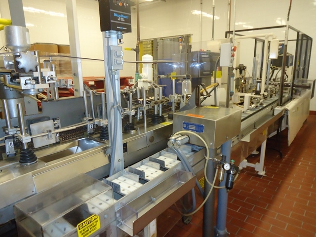 1-Used HMC (Bartelt) IM 8-1/2-12 Automatic Horizontal Pouch Packaging & Cartoning Line. Equipped with Model IM 8-1/2-12 Pouch Packager. Machine last used in food production and has approx. 8-1/2 in. centers. Pouch Packager has Spee-Dee Top Mounted Auger Filling Head and Horizontal Cartoner With Hot Melt Gluing System, Mettler Toledo Checkweighing Device and 3M Case Taper. (Stock #L1248)