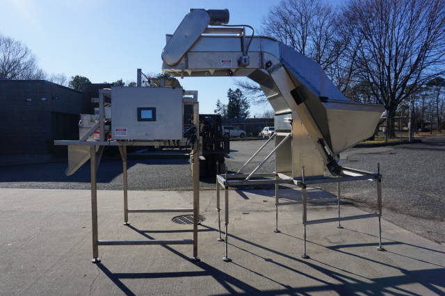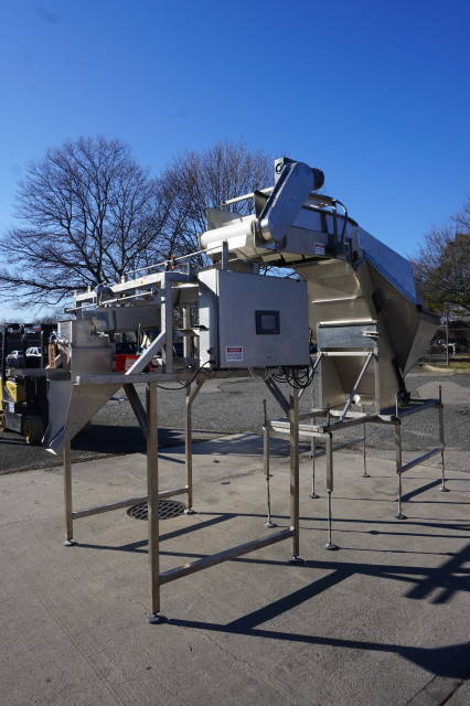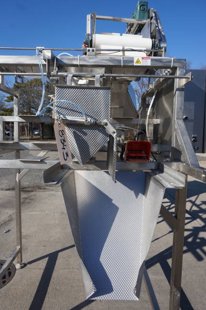 1-Used Ohlson Packaging Model 1L2-SS Stainless Steel Single Head Scale Filler/Weigher, S/N 200837.  Last used in packaging for pasta products, machine has Total Control Touch Panel and is mounted on stainless steel stand.  With foot pedal actuation, machine is expandable and can accept three (3) additional heads.  Can be equipped with Inclined cleated Feeder, with 3.5 In.  High cleats, on 11.5 In. centers, cleat to cleat, at additional cost. (Stock #8343)