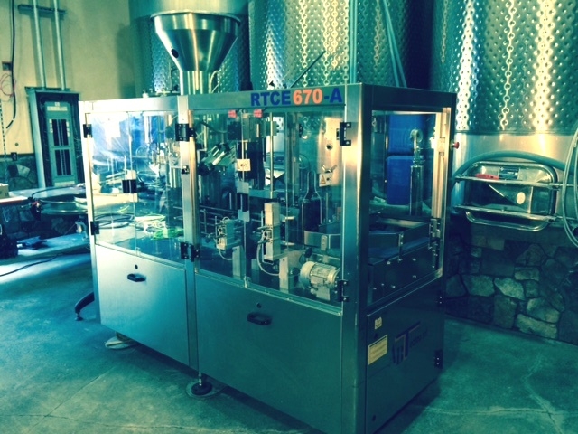 1-Used AB Techno Model RTCE670-A Complete Bottling Line. This fully automated system is equipped with a six head filler, corker for both natural and silicone corks, foiler and pressure sensitive labeler. Last used bottling 500mL Port as well as 750mL Bordeau and Burgandy wines. Taken out of production at the end of February, 2016 due to purchase of a larger line. (Stock # L1218)