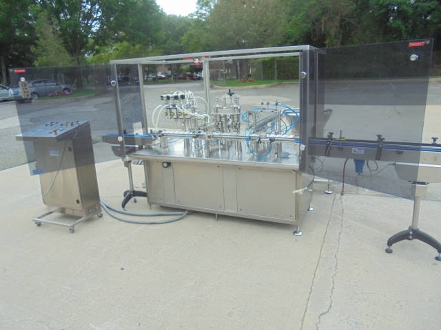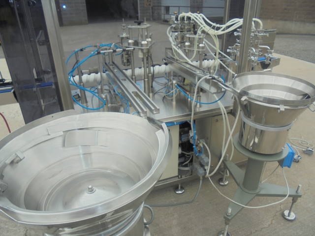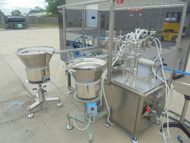 1-Used AS.CO Model Cast 50/D Monoblock Automatic Filling & Capping Machine, S/N 22.019. Rated up to 3,600 containers per hour, this Linear Machine is suitable for filling into vials and applying caps by pressing or screw capping. With contact parts of 316 stainless steel, machine has Four Head Filling Section, as well as Infeed & Discharge Conveyors. With capping head, machine has free standing stainless steel control panel with Proface Digital Read Out, as well as Two Vibratory Bowls. Electrical specifications: 3/60/208 volt. Last photograph shows vial/bottle that this machine is presently tooled for. (Stock #8123)