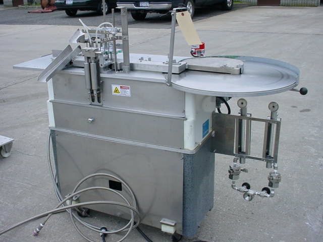 1-USED COZZOLI MODEL FPS-2 DUAL PISTON AUTOMATIC AMPULE FILLING AND SEALING MACHINE, S/N FPS2-FFF-398CA. RATED UP TO 120 AMPULES PER MINUTE, MACHINE IS ON CASTERS FOR PORTABILITY AND IT IS EQUIPPED WITH SELF-CONTAINED APPROX. 24" DIAMETER ROTARY INFEED SECTION. PRESENTLY EQUIPPED WITH TWO (2) 20CC STAINLESS STEEL PISTONS/SYRINGES. ADDITIONAL PISTONS AVAILABLE AT ADDITIONAL COST.