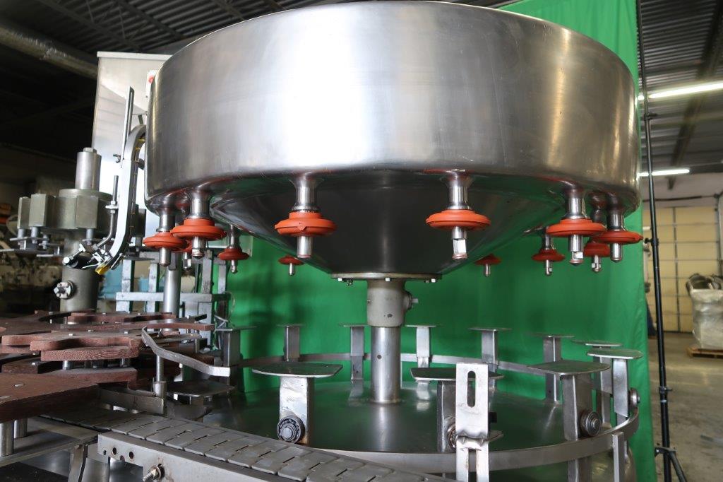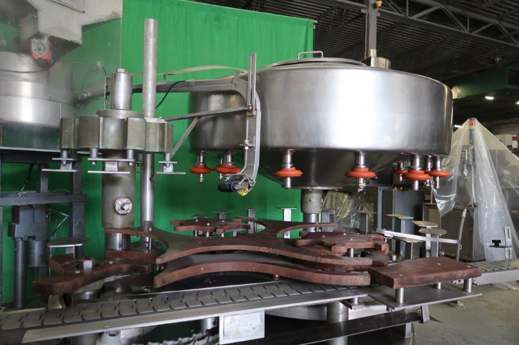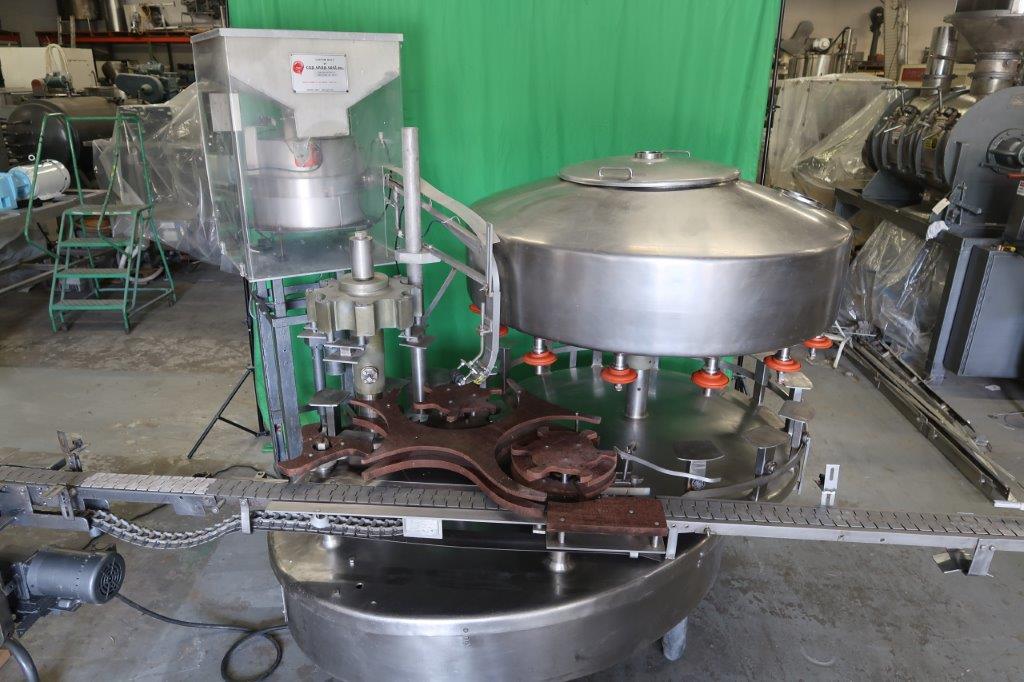 1-Used Filler Specialties 14 Valve Stainless Steel Rotary Liquid Filling Machine, Serial Number 318851144L77. Last used in juice filling, filler has rotary 4 head capping attachment with vibratory bowl feeder and cap chute for tamper evident “press-on” snap caps with tail band. With approximately 14 Ft. long motorized conveyor with plastic table top conveyor chain. Capable of speeds up to 110 per minute on pints, 50 per minute on 64 ounces, and 40 per minute on gallons. (Stock #8764A)