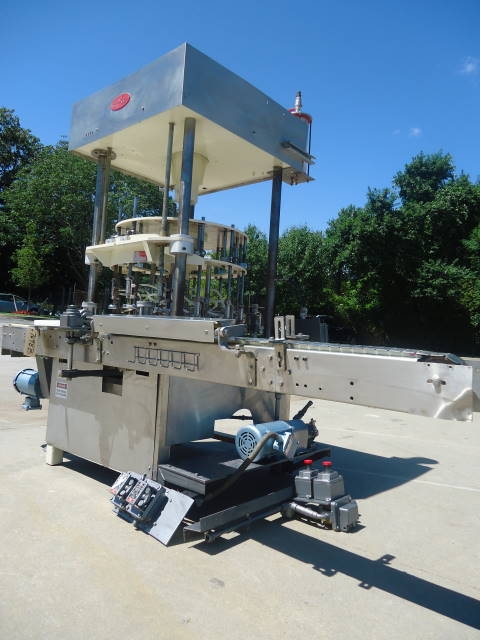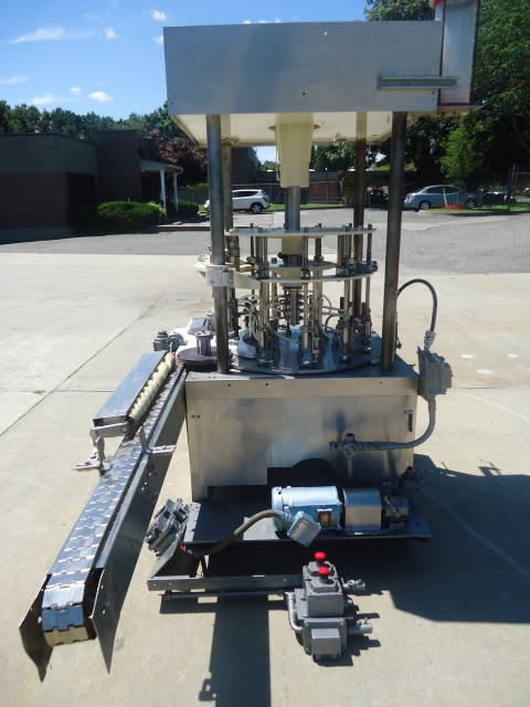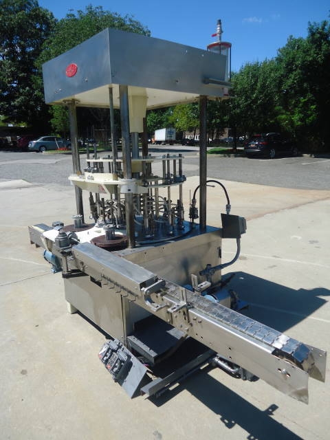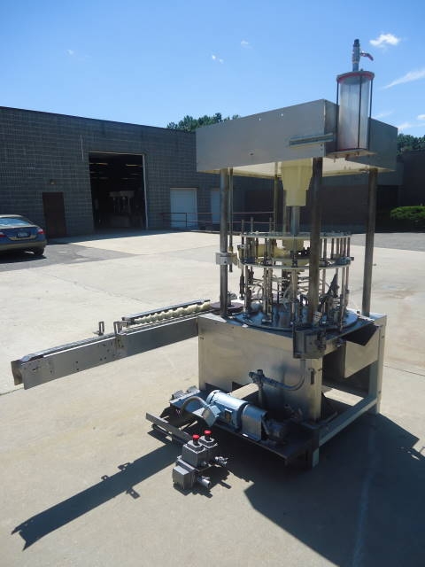 1-Used mrm/elgin “husky” twelve spout rotary vacuum liquid filling machine, s/ n 79031. Equipped with approx. 8-1/4 in. Centers, spout to spout, machine has approx. 9 ft. Long conveyor and is explosion proof. Equipped with explosion proof feed pump and many features. (stock #7698b)