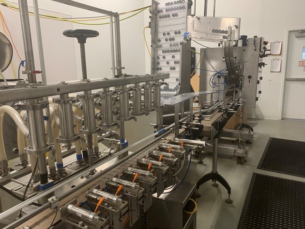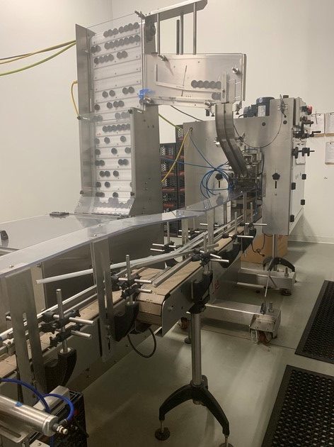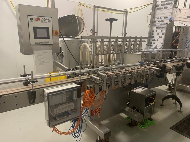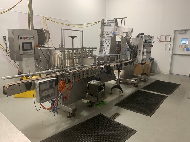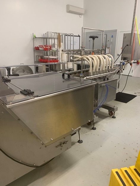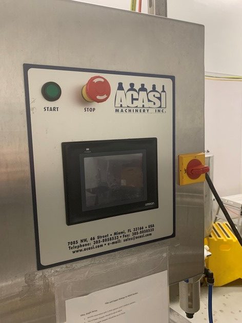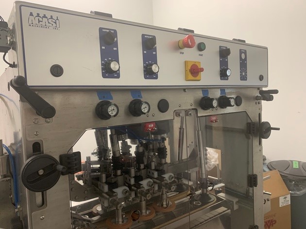 1-Used Acasi Eight Head Straight Line Automatic Pressure OverFlow Filling Machine. Last used in the food industry, the machine is supplied with Acasi “Waterfall” Capping Machine. With plastic tabletop conveyor chain, capper has integrated cap elevator and six spindle capping. (Stock# L1385)