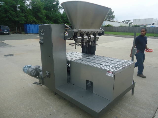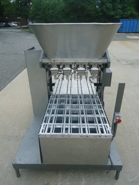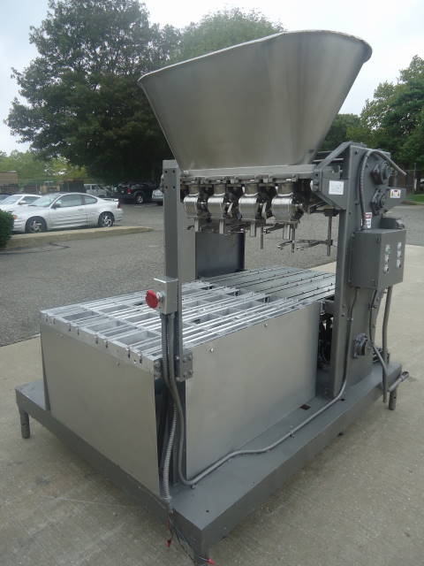 1-Used cherry burrell model 21a-4 four piston automatic filling machine. Equipped with four (4) stainless steel one-gallon size pistons each measuring approx. 6-1/2 in. Diameter x 12 in. Long. With variable speed drive, filler has top mounted stainless steel product hopper and was last filling mayonnaise. Equipped with “bottom up fill”, speeds can be up to 80 per minute, depending on container size and product viscosity. (stock # 7608d)