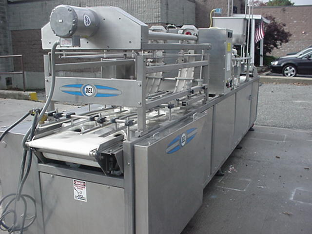 1-USED DEL PACKAGING DL200SH DUAL LANE CUP/TUB FILLING, SEALING AND LIDDING SYSTEM., SERIAL #930190. FEATURES INCLUDE (2)CONTAINER DISPENSER MAGAZINES; (2) PISTON VOLUMETRIC FILLING HEADS; TWO STATION HEAT SEALER; TWO HEAD OVERCAP/LID STATION WITH CHUTE. RATED UP TO 60 CONTAINERS PER MINUTE, PRESENT TWIN HEAD PISTON FILLER HAS CYLINDERS MEASURING APPROX. 3" DIAMETER X 13" LONG AND 12" X 18" X 15" AGITATED PRODUCT HOPPER.WITH ALLEN BRADLEY CONTROLS (NEMA 4 ENCLOSURES) MACHINE WAS LAST APPLYING AN APPROX. 401 DIAMETER PLASTIC LID. ELECTRICAL SPECIFICATIONS 3/60/230 VOLT.