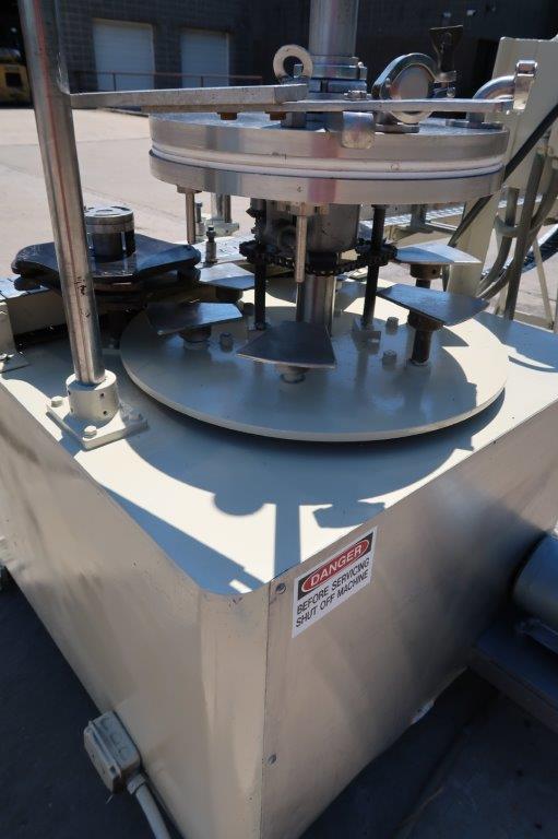 MRM “Versa-Fil” Six Head Rotary Time and Pressure Positive Displacement Filling Machine, with Waukesha Pump