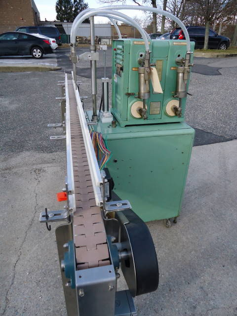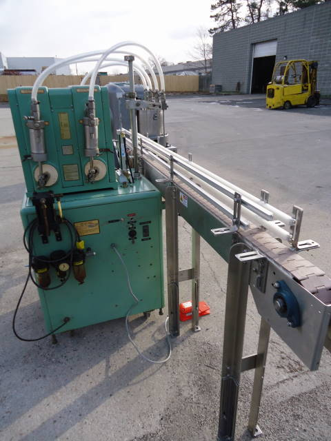 1-USED NATIONAL INSTRUMENT COMPANY "FILAMATIC" MODEL DAB-32 TABLETOP FOUR PISTON FILLING MACHINE, S/N 5083. EQUIPPED WITH FOUR (4) 260CC STAINLESS STEEL ADJUSTABLE PISTONS, MACHINE IS ON CASTERS FOR PORTABILITY AND HAS SPOUT BAR WITH FOUR (4) FILLING NOZZLES. WITH "DIVING NOZZLE" FEATURE, FILLER COMES EQUIPPED WITH FOOT SWITCH. CAN BE SUPPLIED WITH MOTORIZED CONVEYOR AT ADDITIONAL COST. (STOCK #7426F)