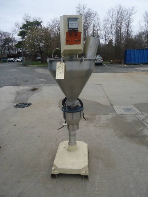 1-USED ALL-FILL MODEL “BM” SINGLE AUGER POWDER FILLING MACHINE, S/N 472276. THIS PEDESTAL MOUNTED FILLER HAS APPROX. 20 IN. DIAMETER STAINLESS STEEL AGITATED PRODUCT HOPPER AND “EAGLE SIGNAL” DIGITAL INSTRUMENT FOR CONTROLLING THE AUGER REVOLUTIONS. DRIVEN BY 1 HP 3/60/208-230-460 VOLT MOTOR. (STOCK #7676D)