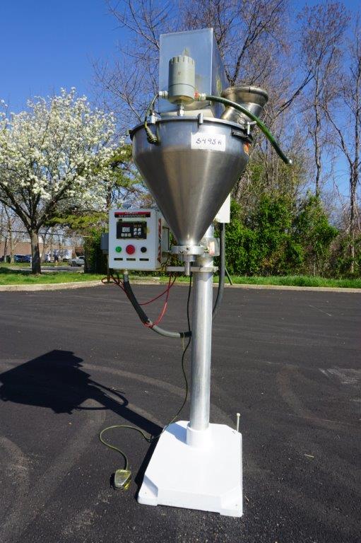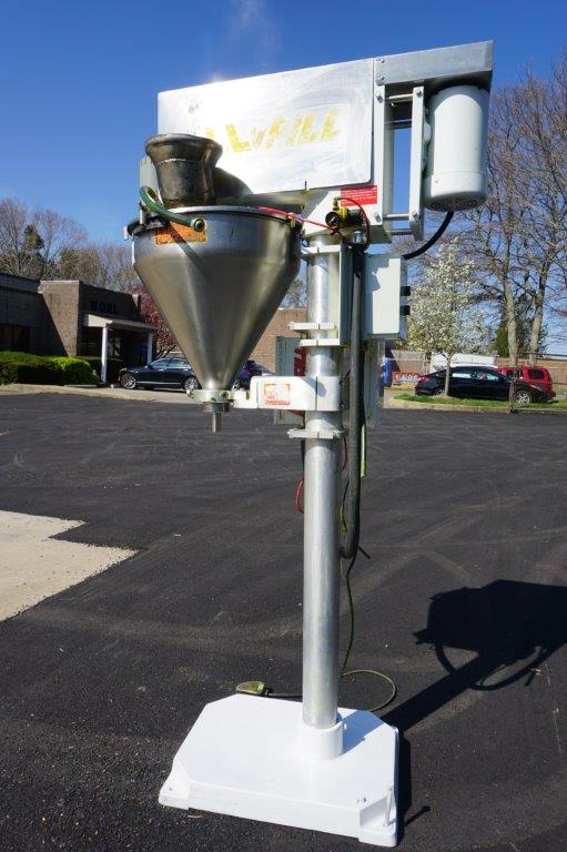 1-Used All Fill Single Head Semi-Automatic Powder Filler. Equipped with approx. 20 in. diameter stainless steel hopper with lid. This Foot Switch Actuated Filler is equipped with “Opti-Mate” Controller. Filler has one motor for the auger filling and one motor for the agitator in the hopper. Auger Filler electrics 1.5 HP, 1140 RPM, 3/60/208-230/460 Volt. Agitator Motor electrics .5 HP, 3/60/208-230/460 Volt. (Stock #8498H)