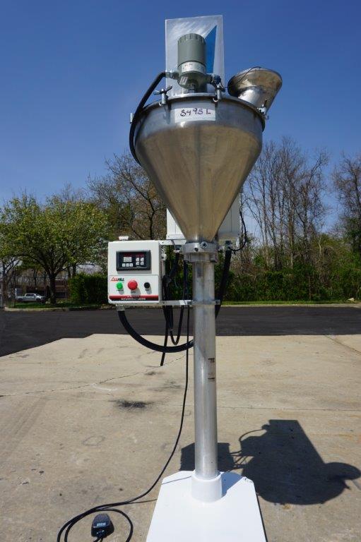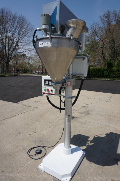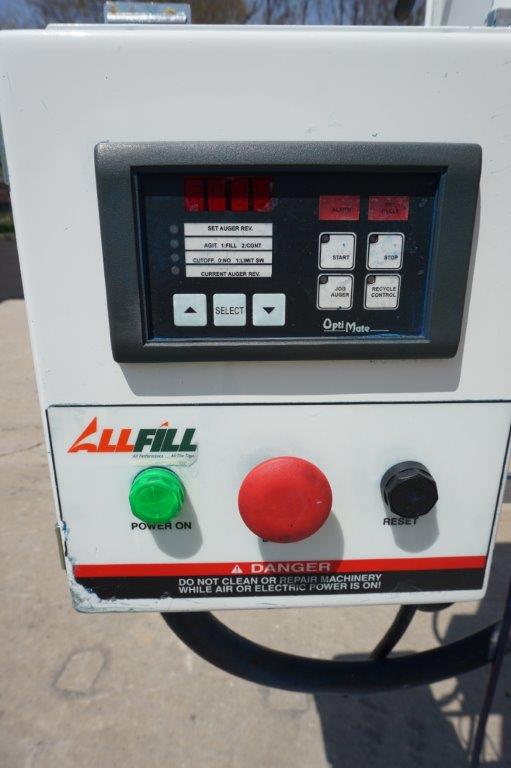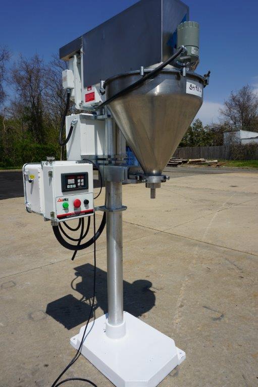 1-Used All Fill Single Head Semi-Automatic Powder Filler. Equipped with approx. 20 in. diameter stainless steel hopper with lid. This Foot Switch Actuated Filler is equipped with “Opti-Mate” Controller. Filler has one motor for the auger filling and one motor for the agitator in the hopper. (Stock #8498L)