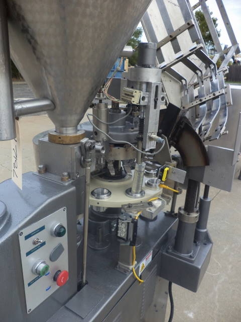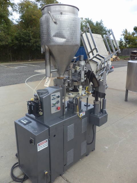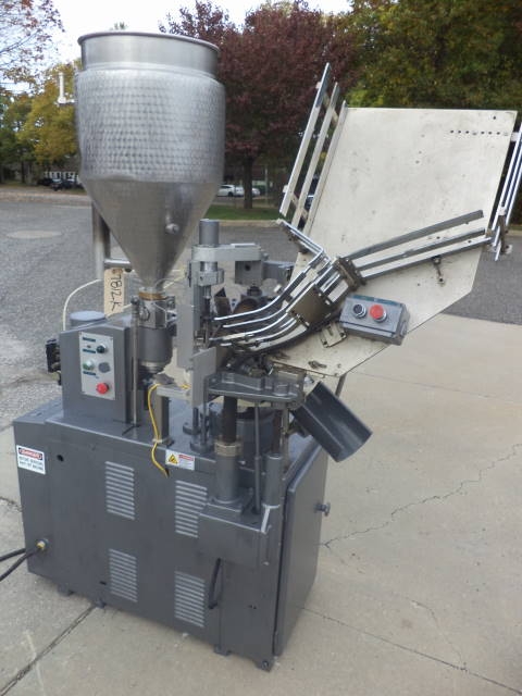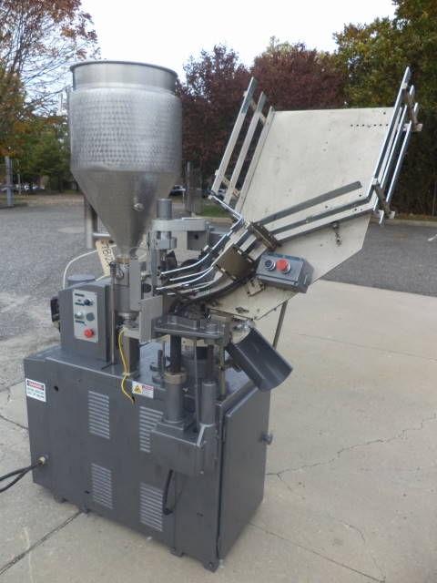 1-Used Comadis automatic plastic tube filling and sealing machine. Equipped with “radiant heat” tube sealing, filler has top mounted jacketed hopper, tube registration and tube magazine. Presently equipped with tube holders for approximately 1-1/2 inch diameter tubes. (Stock# 7812K)