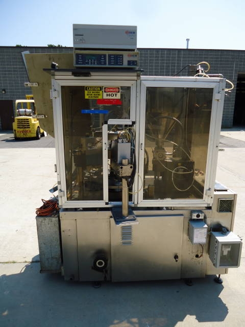 1-Used Comadis Model C100 automatic tube filling machine, machine number 5C100/U-39/88. With stainless steel cabinetry, this tube filler has tube magazine, tube registration and top mounted stainless steel hopper. Presently equipped with tube holders for approximately 1-1/2 inch diameter tubes. (Stock#7812J)