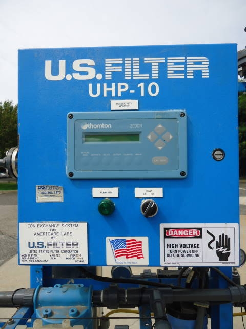 1-Used u.s. Filter water treatment ion exchange/ultra-high purity demineralization system. Model uhp-10. S/n 98021-01. Single phase. 60 cycle. 1 hp. Operating manual avilable (stock# 7812u)