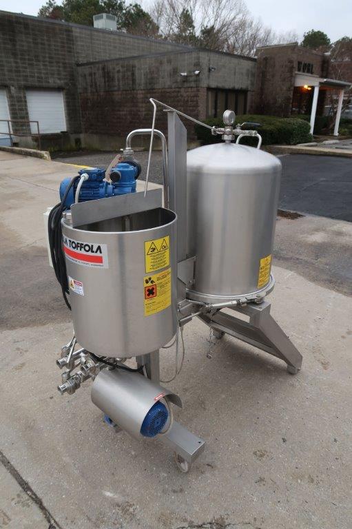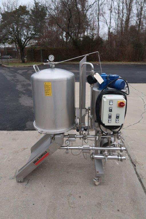 1-Used Della Toffola FSB4 Stainless Steel Pressure Leaf DE filter. Last used in a winery, filter has 1.5 In. tri-clover fittings. Electrical specifications 3/60/208 Volt. (Stock #L1415)
