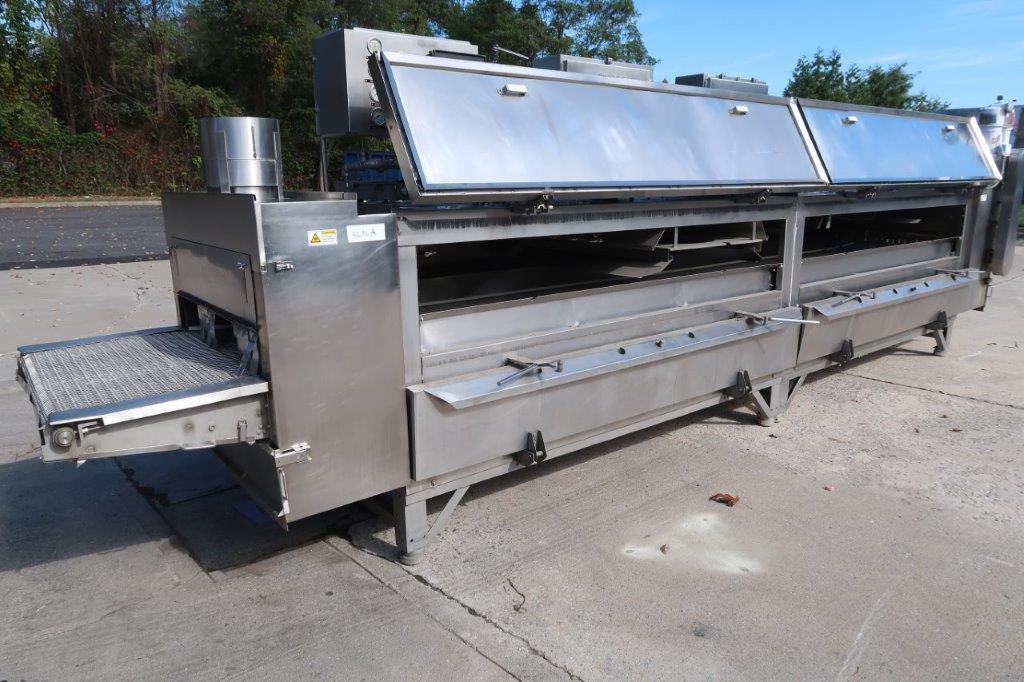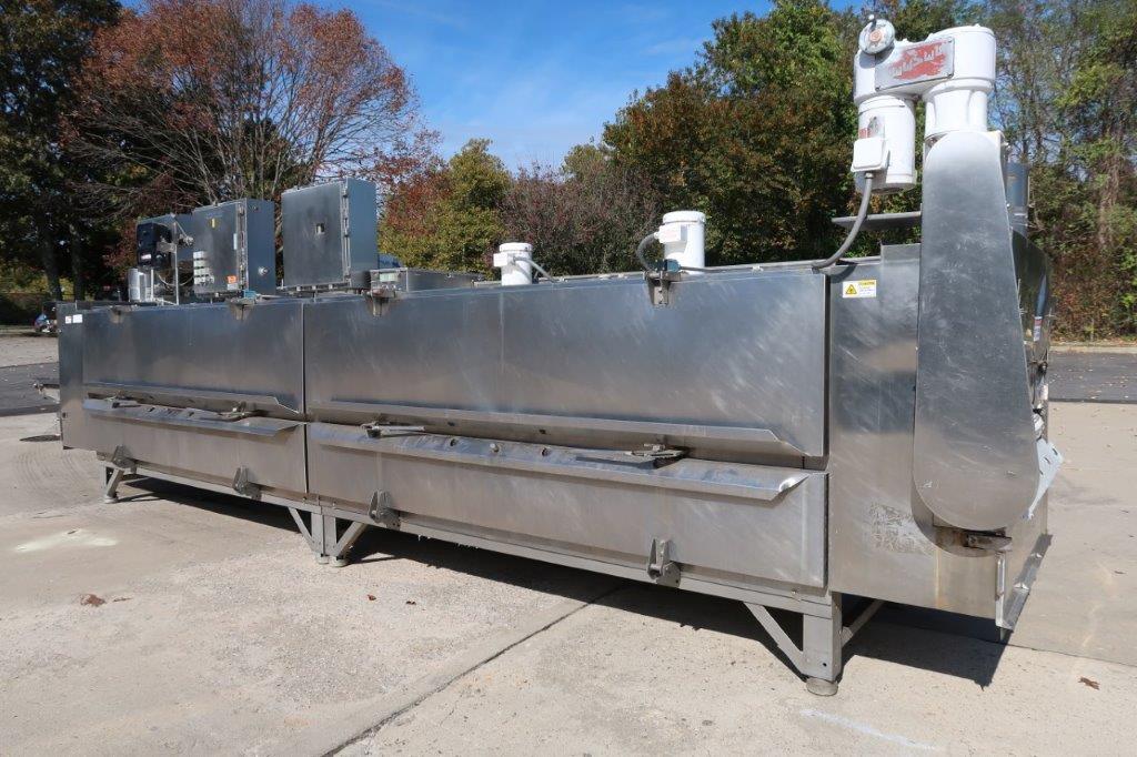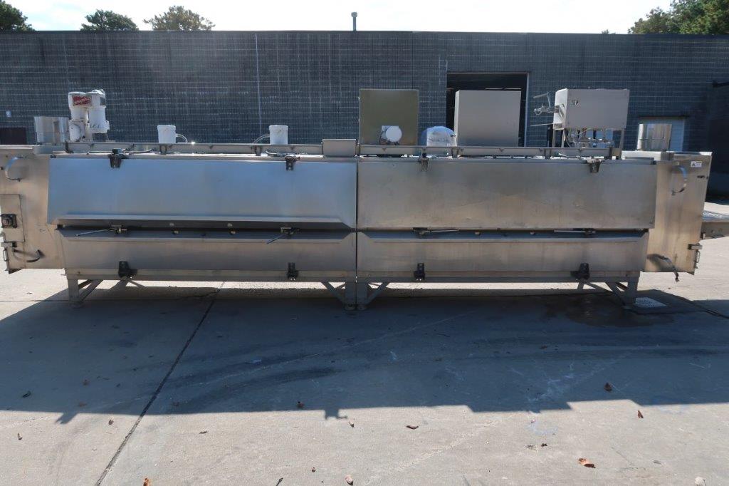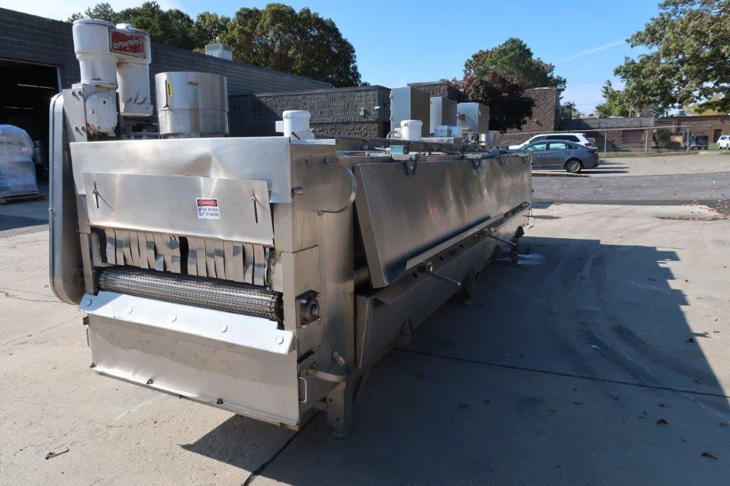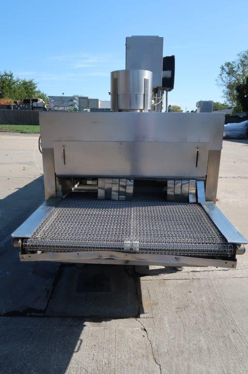 1-Used Liquid Carbonics Model JE-04 Stainless Steel Freeze Tunnel, S/N 90035. With approximately 42 In. Wide belt, freeze tunnel has overall length of 23 Ft. 9 In. Equipped with 2 blower motors and interior spray jets, tunnel has assorted pressure and temperature gauges and total opening height of approximately 15 In. Also with Reeves variable speed drive for conveyor belt, tunnel has 3/60/230 Volt electrics. (Stock #8696A)