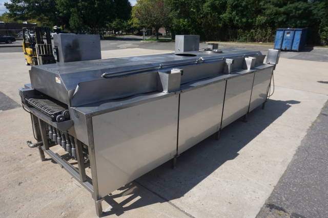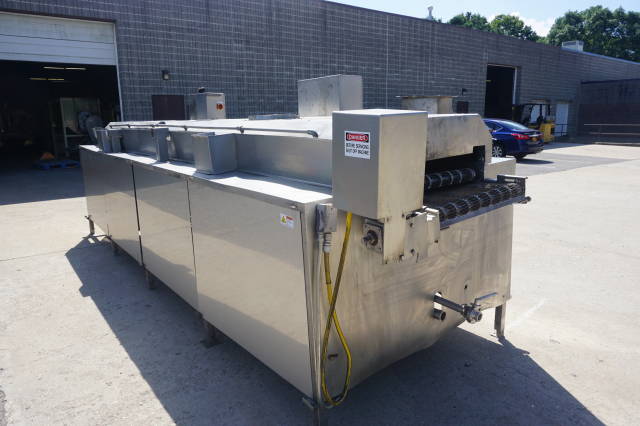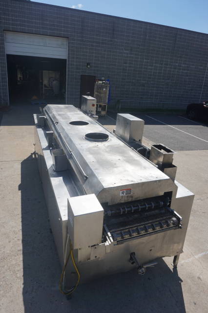 1-Used Cook King Model DFI-3018 Continuous Gas Fired Fryer, S/N 080-0004-001. Last used in the food industry, Fryer measures approx. 30 In. wide belt X 18 Ft. long. This Fryer is designed to pre-cook and/or cook a variety of products at a high production rate. Equipped with upper and lower Conveyor Belts to ensure submerging of product along with positive flow through the machine . Equipped with self-contained control panel. (Stock #8300X)