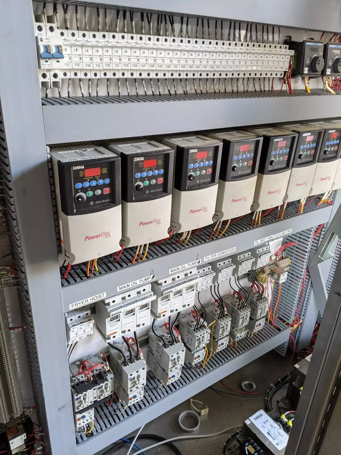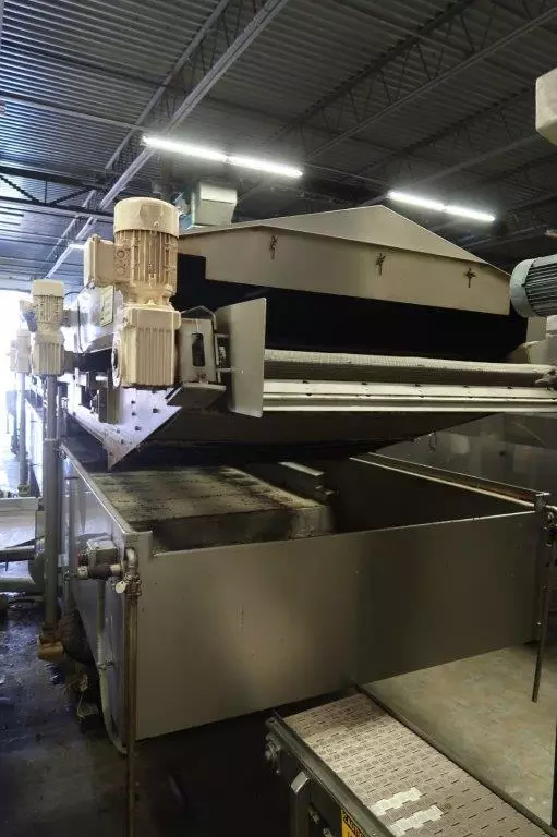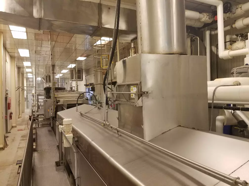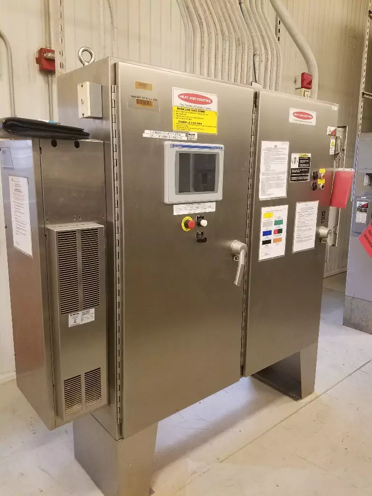 1-Used Heat & Control Continuous Fryer. This Fryer has belt measuring approx. 50 In. Wide X approx. 45 Ft. length. Fryer has control panel and Heat & Control vibratory discharge conveyor. Supplied with two Cornell 25HP oil pumps and Alfa Laval heat exchanger. Manufactured approximately 2011, Fryer can be supplied with catwalk, mezzanine, etc. (Stock #8478)