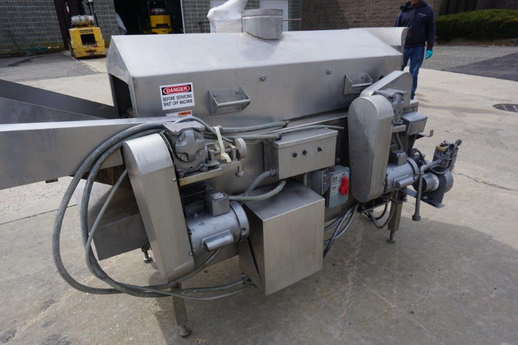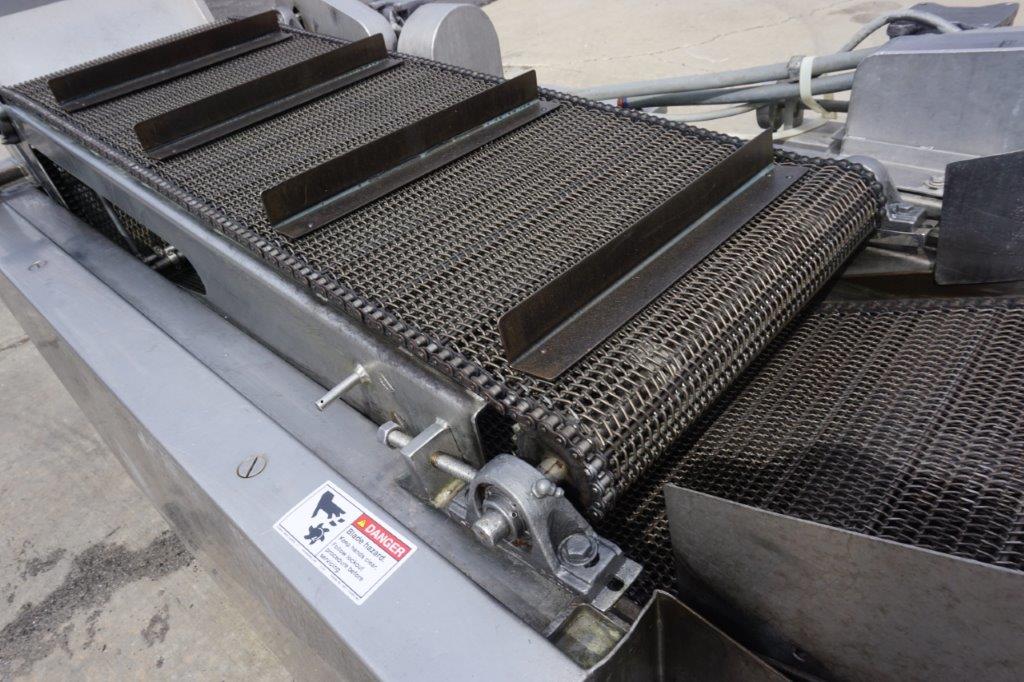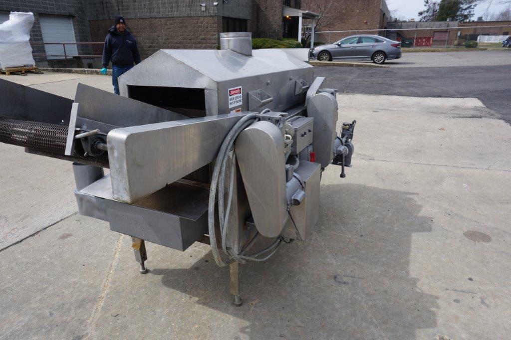 1-Used Heat & Control Continuous Gas Fired Fryer, Model 416-0016-LA,  Serial Number 785-067-12-285.  Equipped with 16 In. wide belt, fryer has “hold-down” belt, cleats, and an overall length of approximately 8 Ft. (Stock# 8624C)