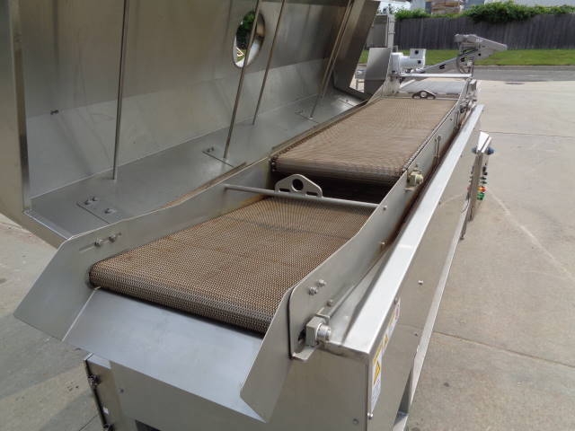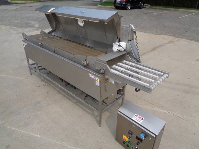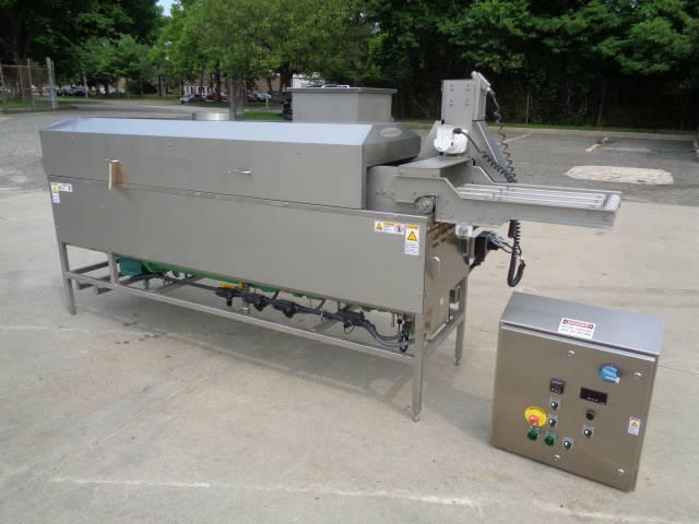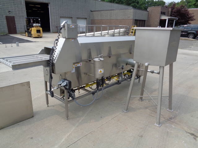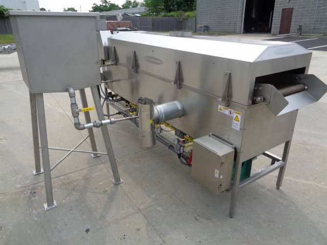 1-Used Heat & Control “Mastermatic” Model GS-700 Stainless Steel Continuous Gas Fired Fryer, S/N 1029.  With “hold down belt, this model has approx. 7 sq. ft. of frying area and a 20 in. wide belt X 112 in. long.  Equipped with Stainless Steel Oil Tank with automatic refill, separate wall mounted Control Panel, 20 in. X 30 in. Infeed, Stainless Steel Conveyor, hinged top cover for easy access.  Can be supplied with In-feed Conveyors and Exit Cooling Conveyor per last photograph attached at additional cost. (Stock #L1194A)