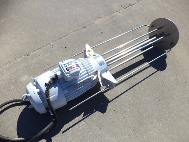 1-Used Arde Barinco 15HP Homogenizing Mixer, Model C3-15-524-RO-5-BL, Serial Number 680. Driven by 15HP 3/60/230-460 volt 3530 RPM motor. Equipped with approximately 42 inch long stainless steel shaft, with two deflecting rods. (Stock #7883B)