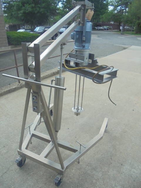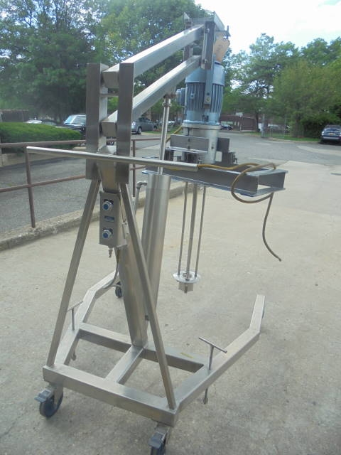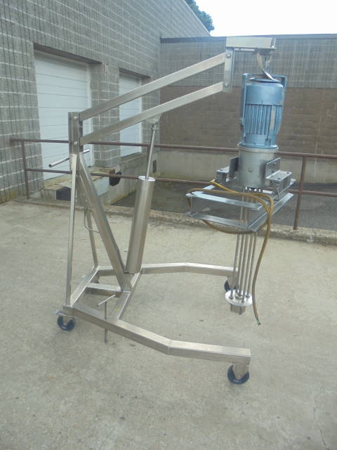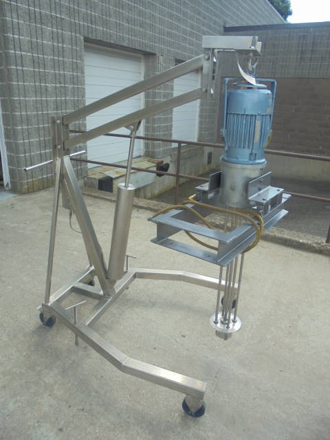 1-Used Hill Mixer, Inc. 3 HP High Speed Homogenizing Mixer. Equipped with approx. 36 in. long stainless steel shaft with bridge for mounting on customer’s existing vessel. Unit driven by 3HP 3/60/230-460 volt, explosion proof motor. Can be supplied with Admix stainless lifting hoist, at additional cost. (Stock #8038X)
