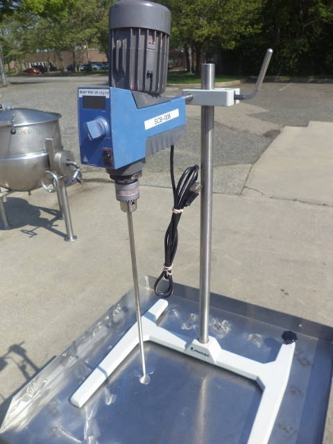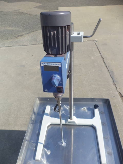 1-Used IKA Model RW20D-S1 Tabletop Laboratory High Speed Mixer.  On stand, propeller driven by fractional HP single phase, 50/60 cycle, 115 volt motor.  Last used in personal care products/cosmetics facility.  Stainless steel table shown in photos not included (available at an additional cost).(Stock #8005F)