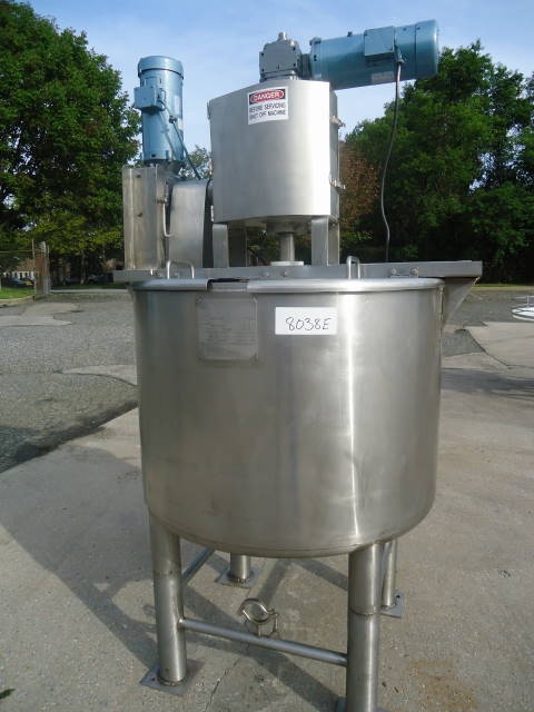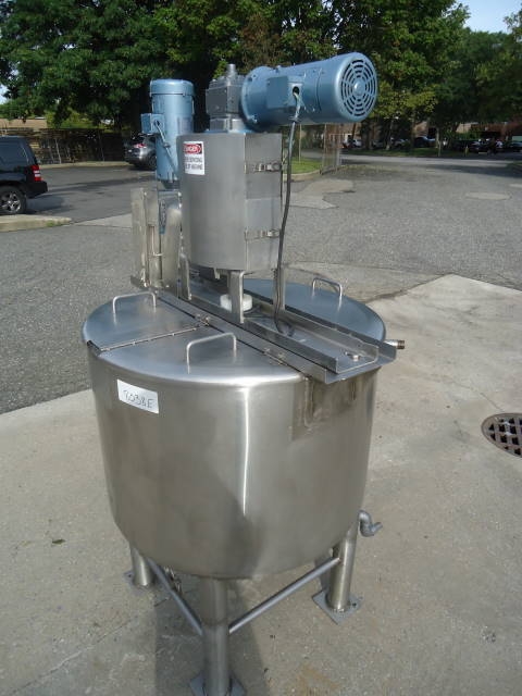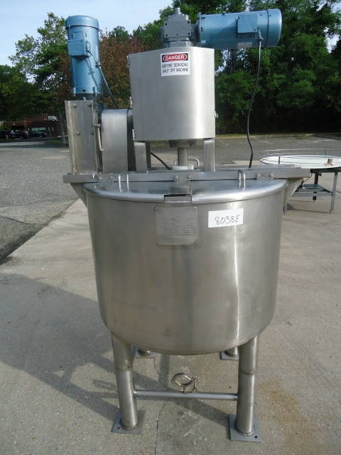 1-Used Walker Stainless 100 Gallon Type 316 Stainless Steel Jacketed Double Motion Scraper Mixing Kettle/Tank, S/N 2564-18841. Internal dimensions approx. 34 in. diameter X 25 in. deep, Kettle has dished bottom with approx. 2-1/2 in. diameter center bottom outlet with hand operated valve. Jacket rated 100 PSI @ 338 degrees F, Code Stamped. Equipped with two (2) Leeson DC drive motors for double motion agitation. All stainless steel legs, approx. 24 in. high. Vessel has stainless steel sectional hinged lid. (Stock # 8038E)