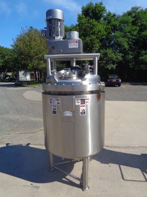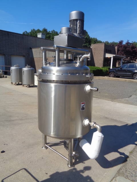 1-Used Walker Stainless Equipment Company 100 gallon (400 liter) Type 316L Stainless Steel Jacketed Sanitary Agitated Reactor, S/N WEP-113870. Equipped with heavy duty scrape surface agitation driven by Nord 10 HP 3/60/230-460 volt gear motor. With dome bolted top with assorted openings including approx. 4 in. diameter sight glass. With dished bottom, Reactor has center bottom discharge and approx. 20 in. high stainless steel legs. Vessel rated 75 psig @ 320 degrees F in the jacket and 60/-15 psig @ 212 degrees F internally. National Board Number 7150, Code Stamped. (Stock #8018A)
