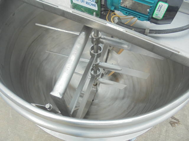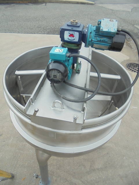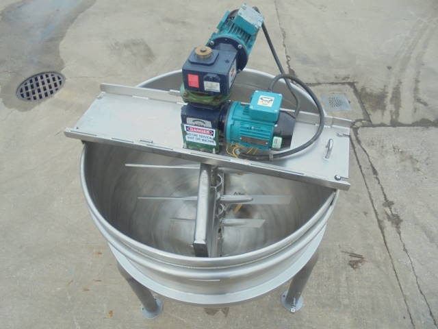 1-Used Hamilton 150 Gallon Stainless Steel Jacketed Double Motion Mixing Kettle, S/N B1352-2. Dimensions approx. 44 in. diameter X 36 in. deep, jacket is rated 40 PSI @267 Degrees F, National Board # 3126, Code Stamped. Double motion scraper agitator is driven by two top mounted motors, one for the scraper agitator, and the second motor for the counter-current agitator. Mounted on approx. 30 in. high legs, Kettle has approx. 2 in. diameter center bottom discharge outlet with hand operated valve. (Stock #8176A)