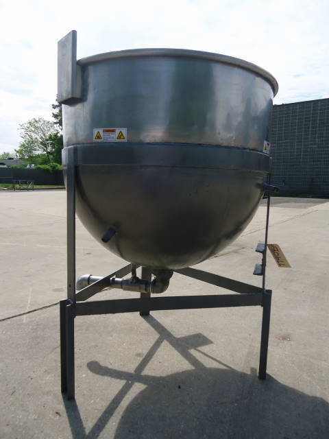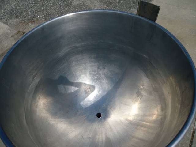 1-Used cleveland range 25 gallon stainless steel jacketed hemispherical mix kettle, model kdp-25, serial number t69597-88h-02. Dimensions approximately 21 inch diameter by 28 inch deep. Jacket rated 50 psi @ 298 deg.f, national board number 18456, code stamped. Kettle also has c.r.n. Number 04830.5 and has bottom discharge valve. Mixer shown in photos is not included, but this kettle could be supplied with a mixer at an additional cost. (stock# 7870d)