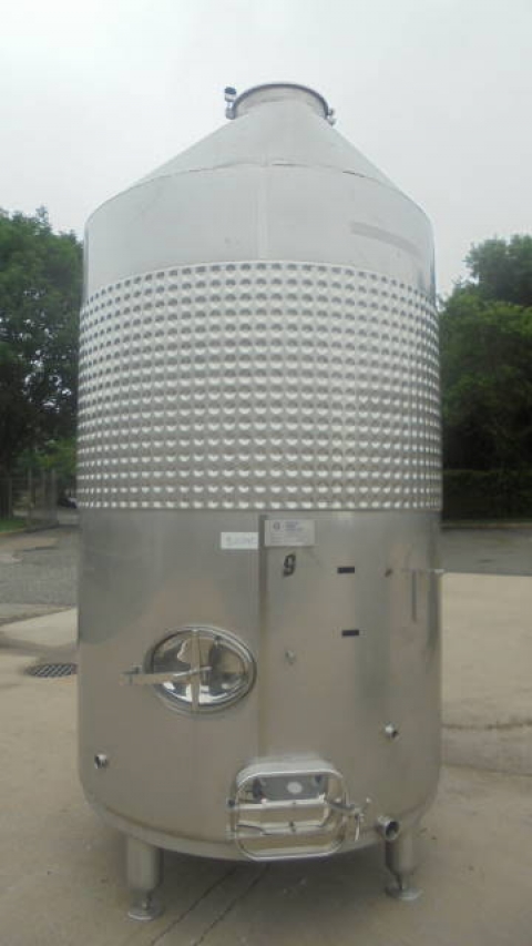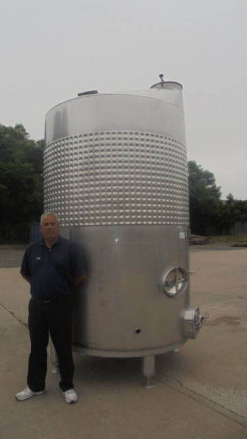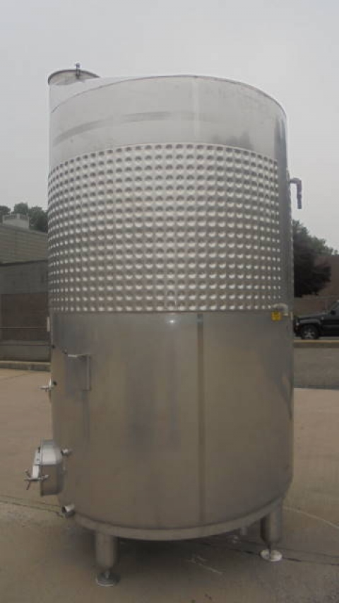 1-Used Criveller 1,980 Gallon Stainless Steel Sanitary Vertical Closed Dimpled Jacketed Tank, S/N 684-1. Dimensions approximately 68 In. diameter X 105 In. on straight side. Last used in the wine industry, tank is on 16 In. high legs, and is equipped with 11 In. X 16 In. side manway with cover, as well as 12 In. X 16 In. side oval manway with cover. Also with approximately 3 In. diameter Tri-Clamp side outlet.