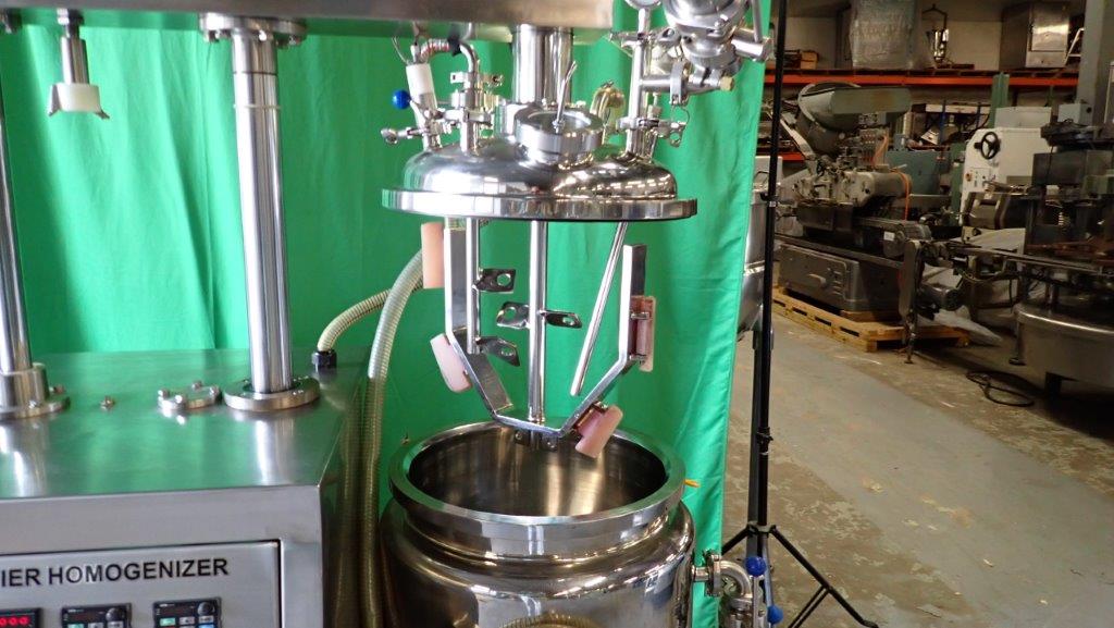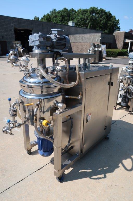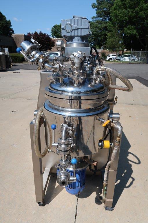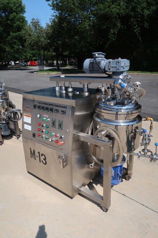 1 – Used Ginhong 20 Liter (approx. 5 gallons) Self-Contained Stainless Steel Jacketed Vacuum Reactor/Kettle, S/N E160741. With self-contained electric heating, machine is equipped with Scraper Agitation (variable speed-up to 60 RPM), as well as bottom entering homogenizer (variable speed up to 3,600 RPM). With automatic “lift-out” of agitation, the machine has a front control panel with gauges, controls, etc. With a self-contained vacuum pump. (Stock # 8773B)