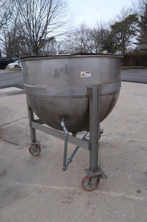 200 Gallon Stainless Steel Jacketed Hemispherical Kettle, Portable