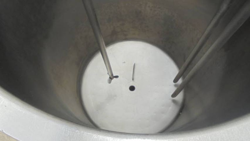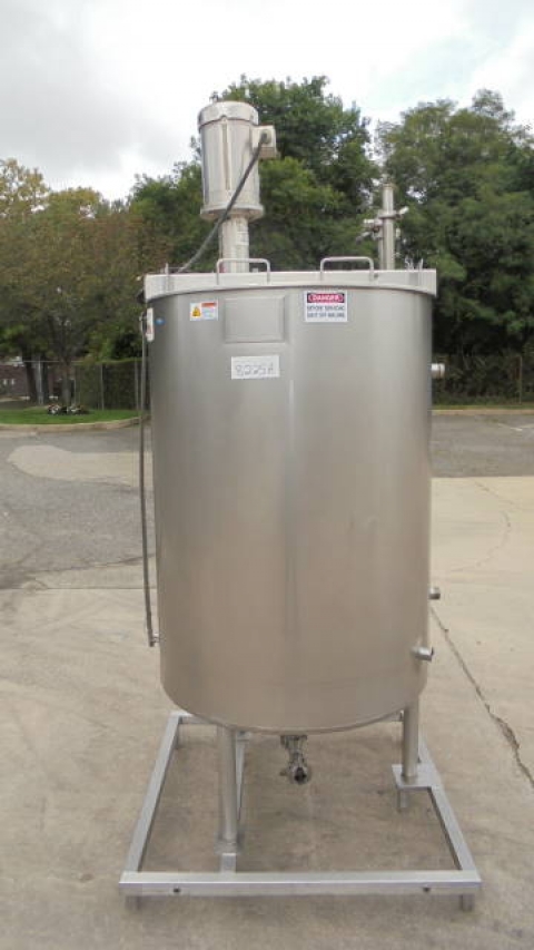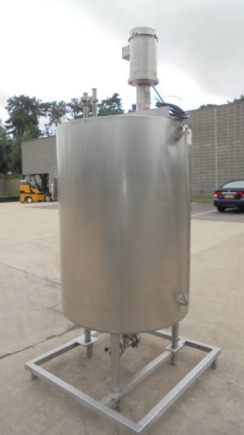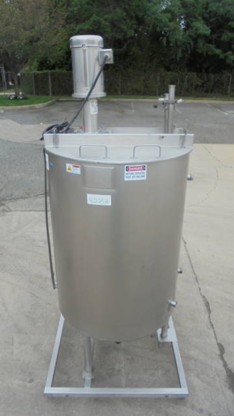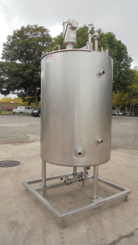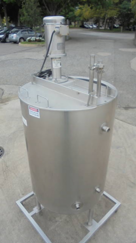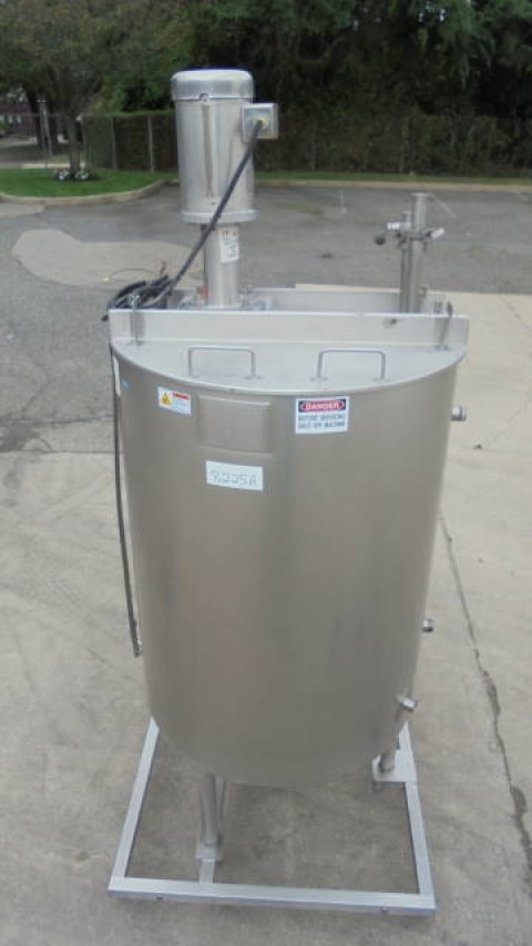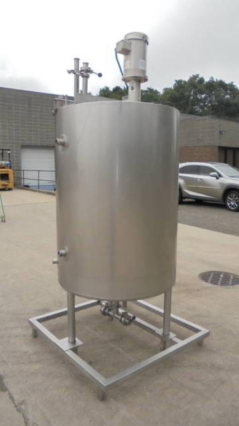 1-Used Viatec 233 Gallon Stainless Steel Jacketed Vertical Mix Tank, S/N 111808-1.  Dimensions approx. 36 In. Diameter X 51 In. Deep, tank is jacketed for 100PSI, National Board Number 8534, Code Stamped.  With dished bottom, tank has approx. 2-1/2 In. Diameter center bottom outlet with valve.  On stainless legs and base, tank has top-mounted Admix “Rotosolver” 5HP stainless motor with propeller agitator. Last used in meat processing facility. (Stock # 8225A)