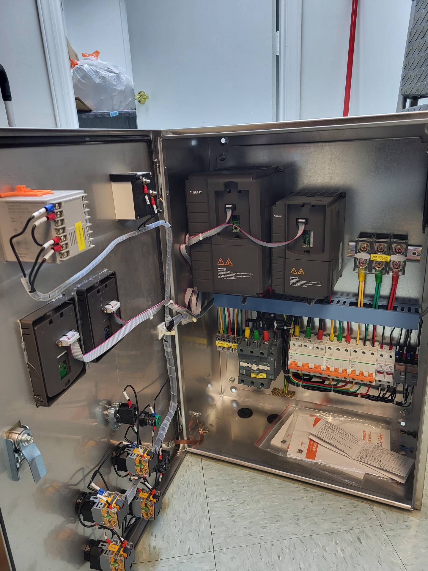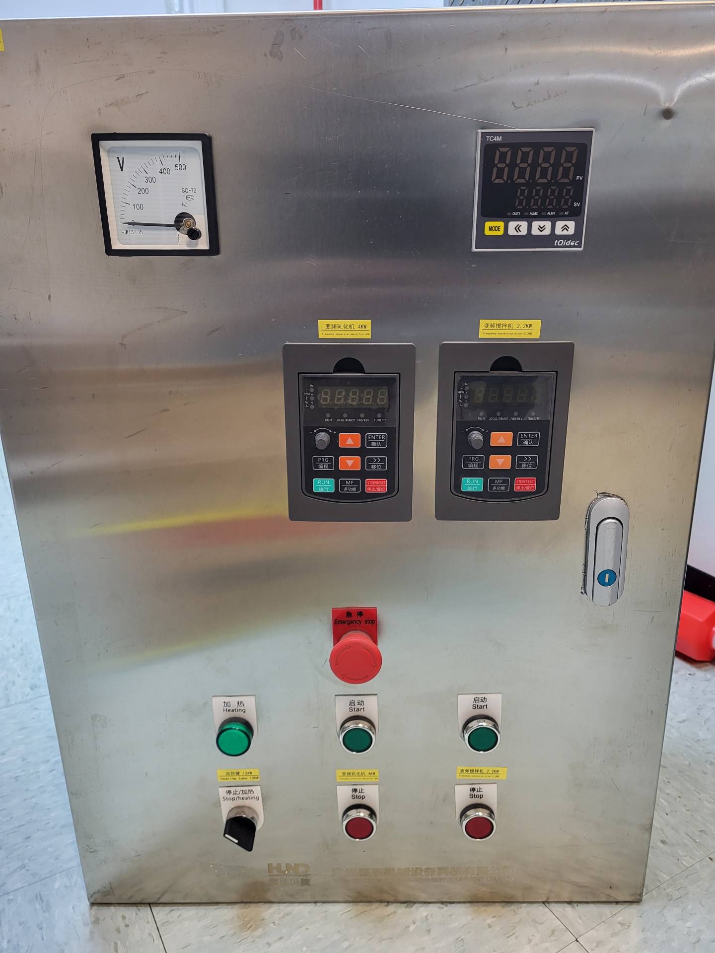 1-Used 300 Liter (Approximately 75 Gallon) Stainless Steel Self-Contained Electric Scraper Agitated Jacketed Kettle with Bottom Homogenizer. On stainless steel legs, unit has stainless control panel with variable speed controls (VFD).(Stock #L1435)