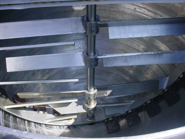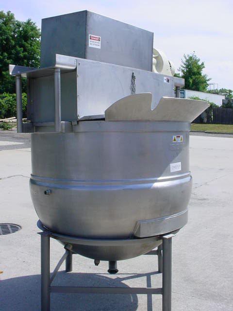 1-USED B. H. HUBBERT & SON 350 GALLON STAINLESS STEEL JACKETED DOUBLE MOTION MIXING KETTLE, S/N 25410. KETTLE IS JACKETED FOR 125 PSI @ 353 DEGREES F, NATIONAL BOARD NUMBER 7066, CODE STAMPED. DIMENSIONS APPROX. 56″ DIAMETER X 47″ DEEP, DOUBLE MOTION SCRAPER AGITATOR IS DRIVEN BY 5 HP 3/60/230-460 VOLT GEAR MOTOR. ON LEGS, KETTLE HAS STAINLESS STEEL HINGED LIDS AND APPROX. 3″ DIAMETER CENTER BOTTOM OUTLET.
