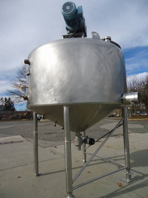 400 Gallon Industries Dacier Scraper Agitated Cone Bottom Jacketed Vessel, 316 Stainless