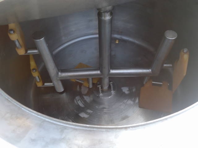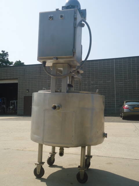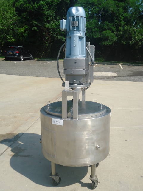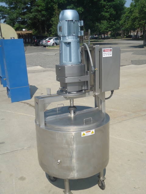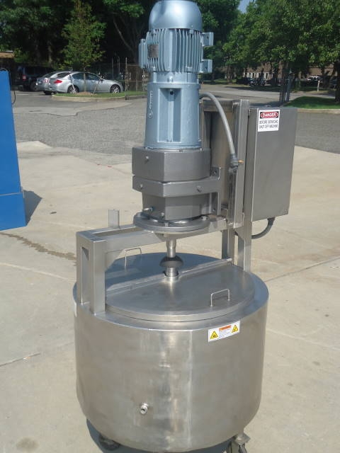 1-Used approx. 60 gallon stainless steel jacketed scrape surface agitated mix tank. Dimensions approx. 31 in. Diameter x 20 in. Deep. Equipped with heavy duty side and bottom scraper agitator. Driven by 20/230/460 volt motor and gear box. Approx. 5 hp 3 phase, 60 cycle. On short legs, kettle has stainless steel starter box. Equipped with approx. 1-1/2 in. Diameter bottom discharge outlet. (stock #7799e)