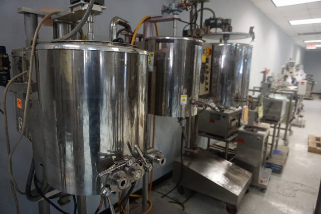 3-Used Tecnicoll approx. 65 Liter Stainless Steel Self-Contained Electric Mix Tanks.  Last used in personal care products, machinEs have internal agitation and top mounted motor drive.  Electrical specifications:  3 phase, 60 cycle, 220 volt.  (Stock $L1382)