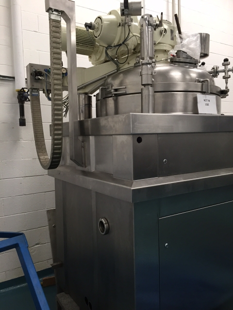 1-Becomix 500 Liter (approx. 125 gallon) Stainless Steel Jacketed Vacuum Agitated Process Vessel. Model RW 500, machine number 011/5-341. Last used in personal care products production, unit is rated 58 psi in jacket @ 303 deg.F, and 30 psi internal pressure at 271 deg.F (Full Vacuum). Vessel has numerous features including scrape surface agitation and control panel. Equipped with approx. 3 in. discharge. Equipped with bottom entering homogenizing head, variable speed. Further specifications available upon request. (Stock #L1185)