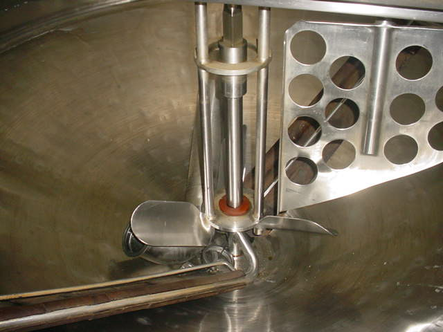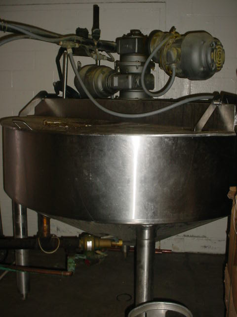 1-Used chester jensen 70n20 200 gallon stainless steel jacketed cooker/cooler. Unit equipped with full sweep agitation, as well as center agitation, each independently driven. With two-piece hinged cover and stainless steel legs measuring approx. 36″ high. (stock # l1164)