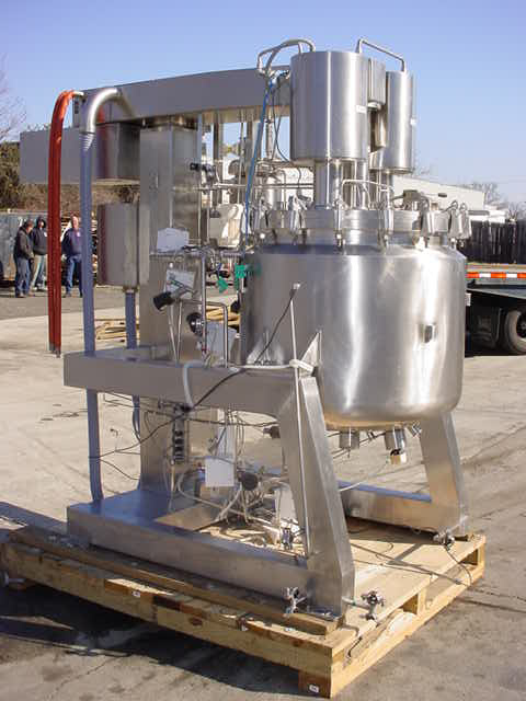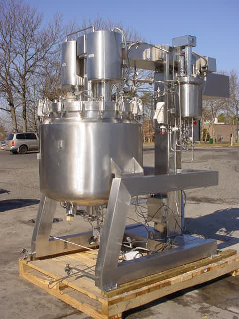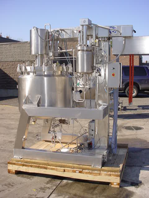 1-USED FRYMA MODEL VME-250 STAINLESS STEEL VACUUM PROCESSING UNIT, S/N M14801. WITH THREE (3) INDEPENDENTLY DRIVEN MIXING ACTIONS . LAST USED IN MANUFACTURE OF OINTMENTS AND CREAMS AT VISION CARE FACILITY. THIS SANITARY, JACKETED VESSEL HAS NATIONAL BOARD NUMBER 6753, CODE STAMPED. WITH ACCESSORY STAINLESS STEEL CONTROL PANEL, UNIT COMES EQUIPPED WITH EXTENSIVE OPERATIONS MANUALS, DRAWINGS, DOCUMENTATION, ETC.