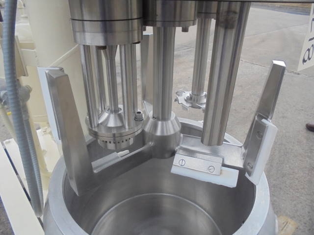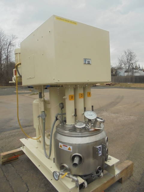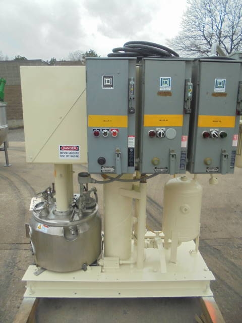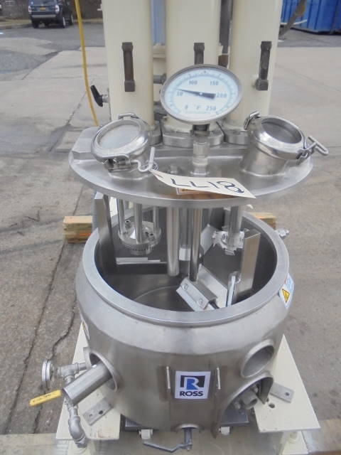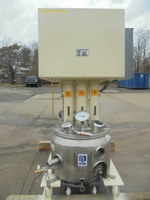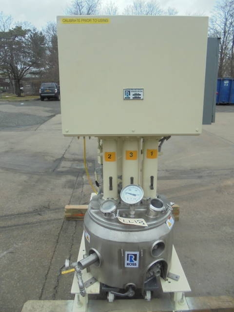 1-Used Ross Model PVM-10 10 Gallon Stainless Steel “Versamix” Triple Motion Vacuum Mixer, S/N 50365. With stainless steel contact parts, machine has sweep agitation plus off center dispersion agitator and high speed HOMOGENIZING MIXER. With three (3) starter boxes. Unit driven by two (2) Pacemaker Motors. One is 230-460 volt, 5HP, 3 phase and the other is 230-460 volt, 3 HP, 3 phase. The other motor is a US Motors and is 230-460 volt, 1 HP, 3 phase. Further specifications available upon request. (Stock #8177)