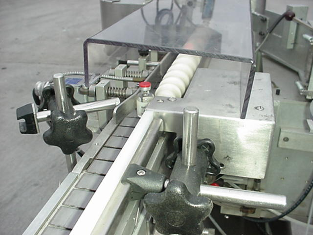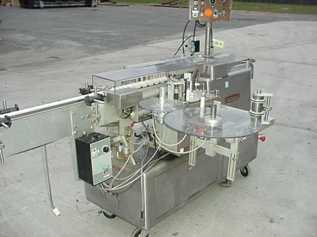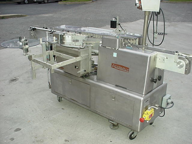 1-Used accraply model 4000-hv stainless steel automatic pressure sensitive labeling machine, serial #1627. Equipped with worm infeed, machine is designed for the labelling of small pharmaceutical type vials. Equipped with variable speed control, machine has approx. 2″ wide plastic tabletop conveyor chain
